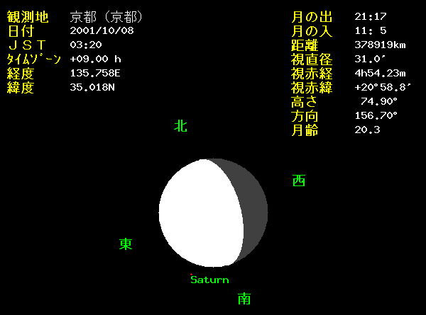 ![]() 10月8日3:20頃から北日本で木星が月に隠される現象「土星食」が起こります。南日本では、土星食にはなりませんが、月に接近する土星の様子を楽しみましょう。月は地球の直径の30倍程しか離れていないので、観測する地域により位置が少し変わります。従って、土星が月に潜入する場所も地域によって変わります。 ![]() 10月30日には水星が西方最大離角となり、明けの東の空の低いところに見られます。水星は太陽に一番近い惑星であり、太陽からあまり離れないので見るのが難しい星です。 |