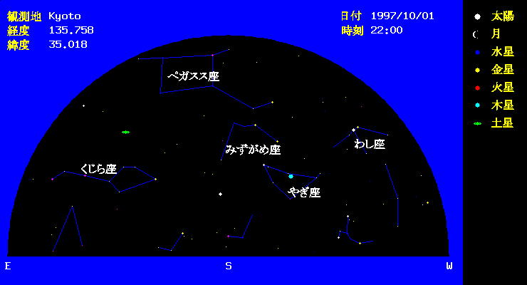 今年は南の方向のやぎ座の中に木星の巨光が見えます。双眼鏡をお持ちの人は、のぞいて見てください。