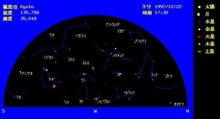 また水星が日没時10゜位の位置に見えます。西の方向が見晴らしが良ければ見つけることができるでしょう。