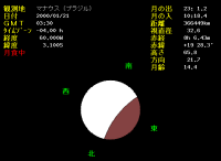 | 1月21日,アメリカ、ヨーロッパ、アフリカで皆既月食がおこります。日本では見ることができません。世界標準時4時43分(日本標準時13時43分)頃、食が最大になります。月食の場合は この時刻に月が見えている地域では、どこでも見ることができます。欠けていく角度が異なるのみです。ある日の月で、時刻を「すべて世界標準時(UT)」にして、観測する地域をいろいろ変えてみましょう。 | |