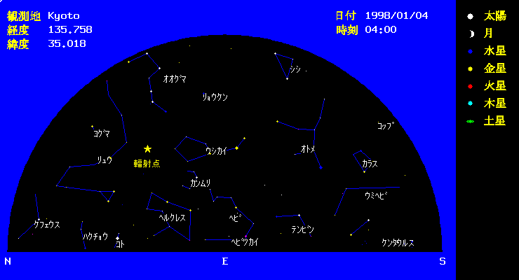 正月早々の1月4日明け方にはりゅう座ι流星群がピークになります。早起きか、夜更かしをして東空を眺めましょう。