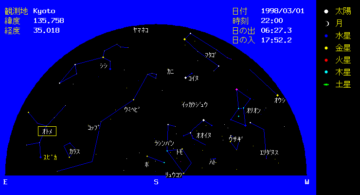| ずいぶん暖かくなりました。それにともなって、星座の方は寂しくなってきます。 春には明るい星があまり見られません。3月には春の星座の定番であるおとめ座が昇ってきていますね。 1等星のスピカを東の空に見つけることができると思います。 | |