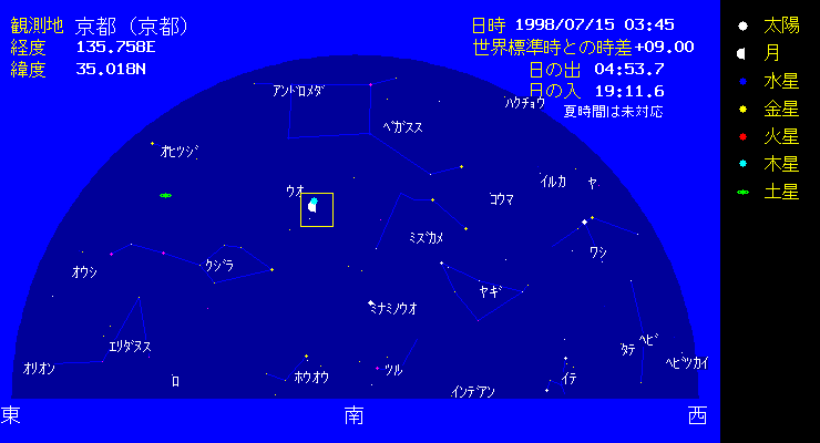 | 7月15日 明け方、月と木星が接近 7月20日 明け方北海道北部でアルデバランの接食 |